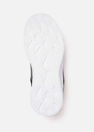 A pair of grey and black woven design running shoes, has regular Styling, lace-ups detail Synthetic upper Cushioned footbed Textured and patterned outsole