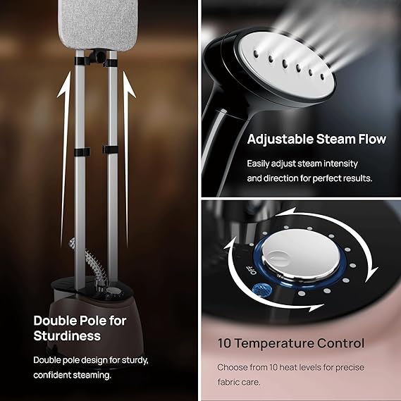 Wipro Elato GST 204 Standing Garment Steamer | 2.2L Water Tank | 10 Heat Settings | Adjustable Steam FLow | Adjustable Iron Board | Horizontal And vertical Ironing | SteamOutput 42 g/min|2000 Watts